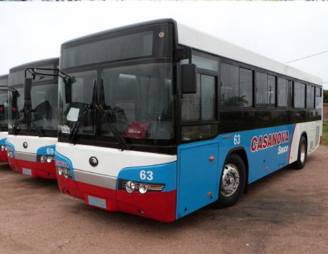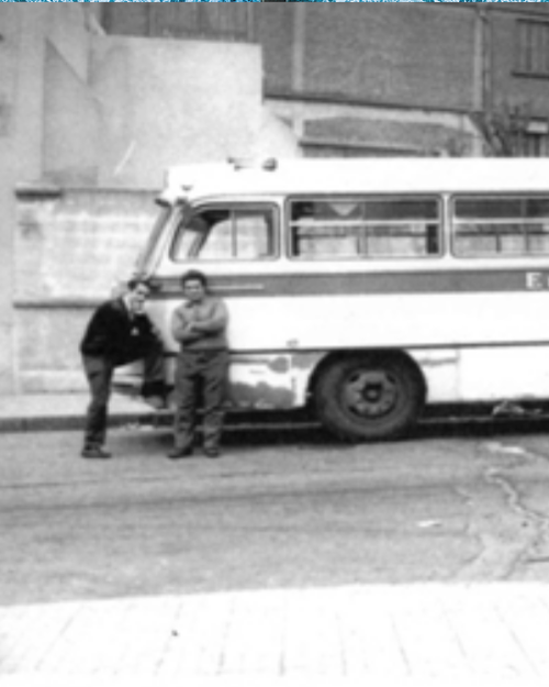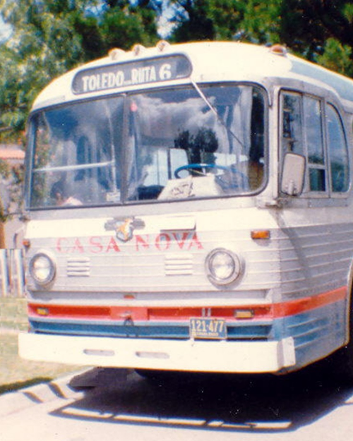 en su primer bus