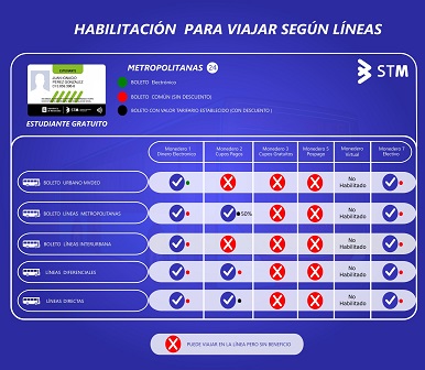 Los estudiantes al viajar deberán hacerlo dentro del Origen Destino que tenga grabado su tarjeta STM estudiante no podrá hacerlo en otro tramo con el cupo de boletos Pagos